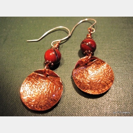 Jewelry artisan and friend, Jan O’Banion made this beautiful jasper and copper “mandala” earrings. She hand formed the copper medallions, connections and earring wires.