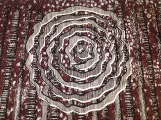 The photo actually makes it look even better than the actual carpet. The swirls of this mandala seem to float above the vertical line patterns.
