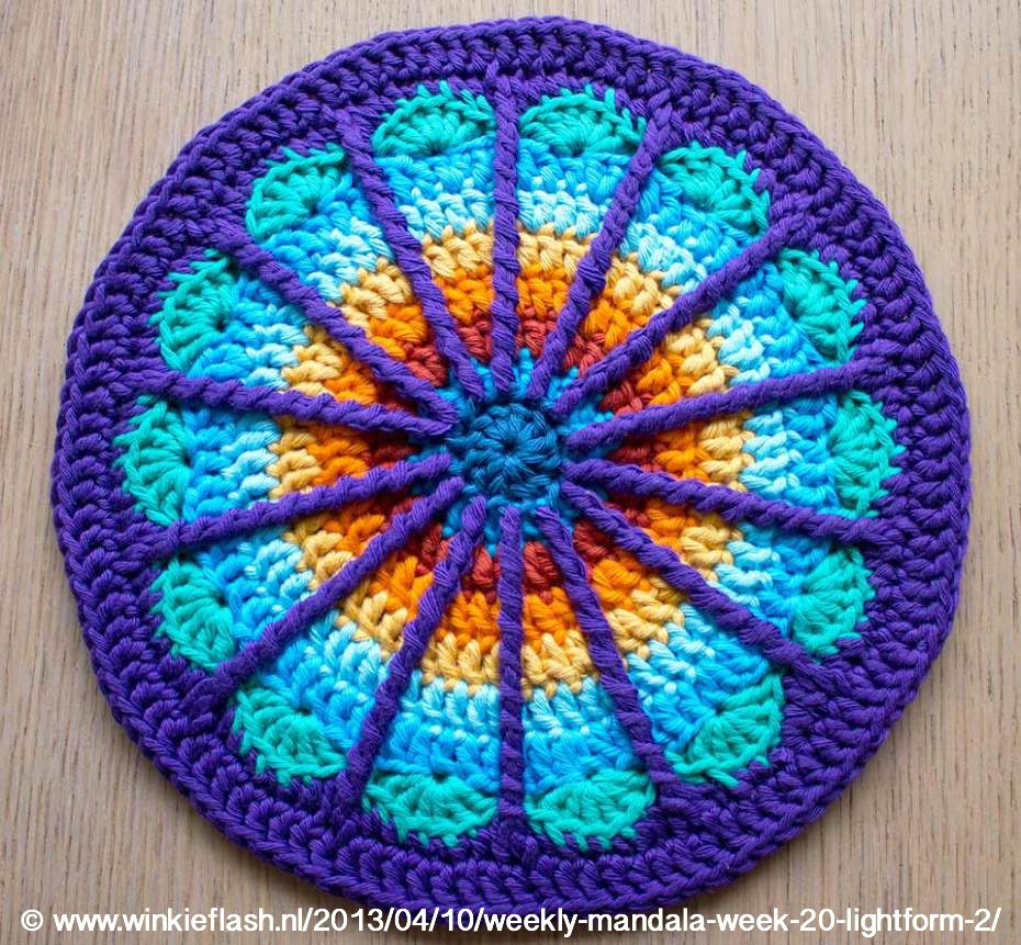 How cool is this! A crocheted mandala by Marinke that looks like a stained glass window. I’ve been crocheting doilies for years using the typical thin white thread. Marinke has taken it to a whole new level, using a larger weight yarn, bold colors AND using overstitching. Just beautiful!