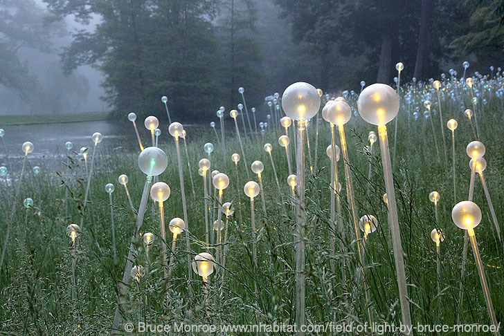 In 2012, British Artist, Bruce Munro created this delightfully mystical outdoor installation of LED flower blooms at Longwood Gardens in Pennsylvania. As I look at this photo, I keep waiting for little faeries to appear.