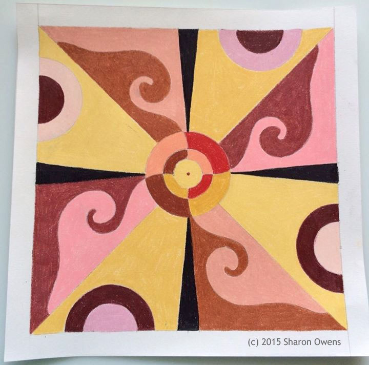 Sharon Owens paints beautiful floral art pieces. This time she decided to Ā “try something new.” She created a simple mandala design. And instead of watercolors, she used color pencils.