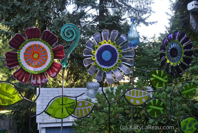 Glass and Metal artist, Katy LaReau, created these delightfully whimsical garden art pieces that I had the pleasure of seeing in person yesterday at the annual Corvallis Fall Festival in Corvallis, Oregon. If you’re ever in Oregon towards the end of September, I highly recommend visiting this wonderful art and music festival.