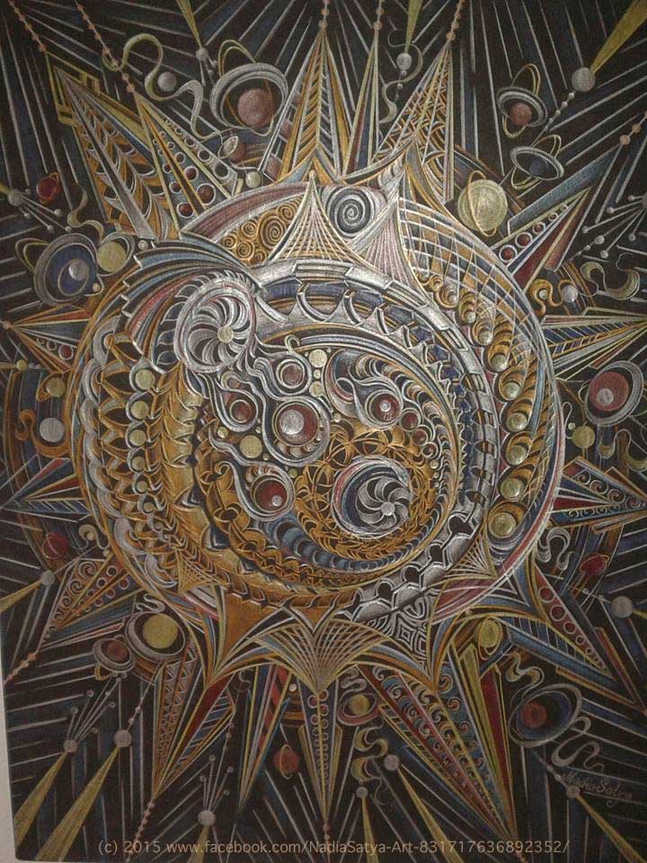 Today’s MotD will blow you away. It’s spectacular! Created by the brilliantly creative mind of Treasure Island Florida artist, Nadia Satya, she brings magic to the world with her intricate patterns and delightful use of color, making them look like metallic steampunk art…and she does it using color pencils on black paper! …hence the magical part!