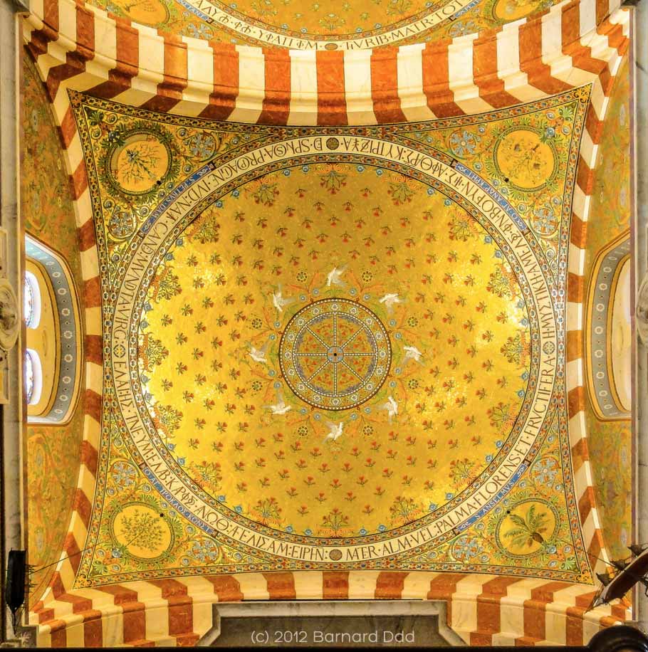 Looking up from the nave, there are three cupolas which are covered in very rich mosaics dominated by gold and blues that represent the power of God. The first cupola represents the Patriarchs, and the second Moses and the third cupola the Prophets [today’s MotD].