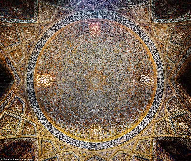 Internationally awarded Iranian photographer, Mohammad Reza Domiri Ganji, interested in panoramic and architecture photography, took this stunning ceiling photo at the Seyyed Mosque in Isfahan. He captured the amazing symmetry and colors of this beautiful ceiling that just draws you into the Divine center.
