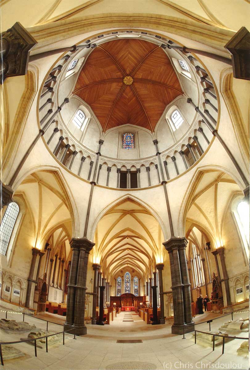 The Church was built by the Knights Templar, the order of crusading monks founded to protect pilgrims on their way to and from Jerusalem in the 12th century. The Church is in two parts: the Round and the Chancel. The Round Church was consecrated in 1185 by the patriarch of Jerusalem. It was designed to recall the holiest place in the Crusaders’ world: the circular Church of the Holy Sepulchre in Jerusalem.