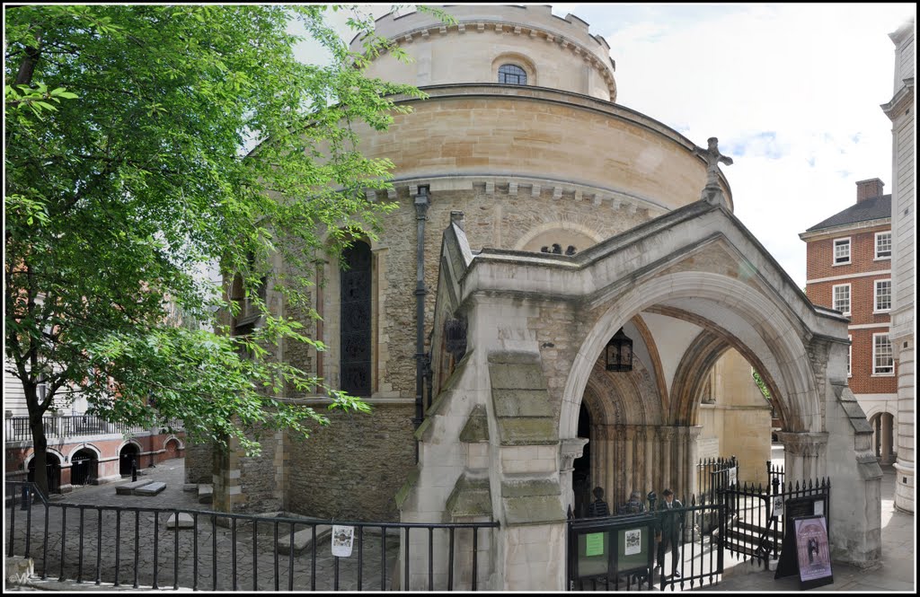 The Temple Church is a late 12th-century church in the City of London located between Fleet Street and the River Thames, built by the Knights Templar as their English headquarters. During the reign of King John (1199–1216) it served as the royal treasury, supported by the role of the Knights Templars as proto-international bankers. It is jointly owned by the Inner Temple and Middle Temple Inns of Court, bases of the English legal profession. It is famous for being a round church, a common design feature for Knights Templar churches, and for its 13th and 14th century stone effigies. It was heavily damaged by German bombing during World War II and has since been greatly restored and rebuilt.