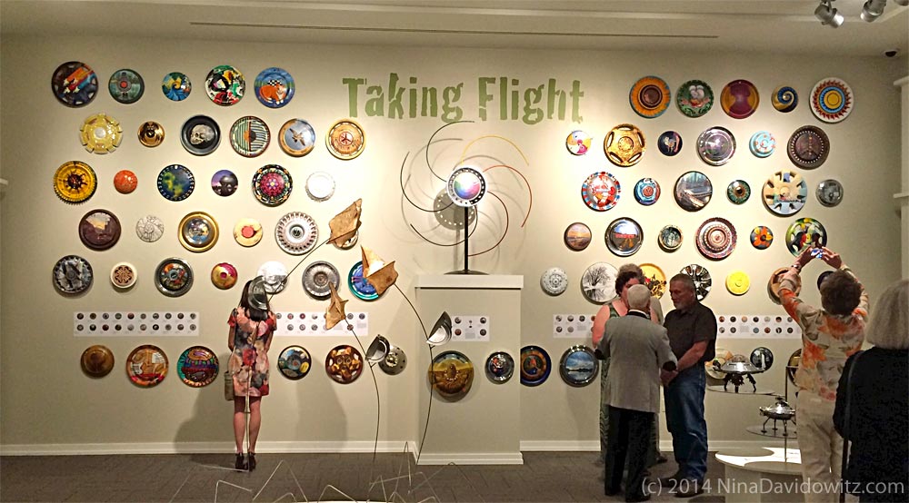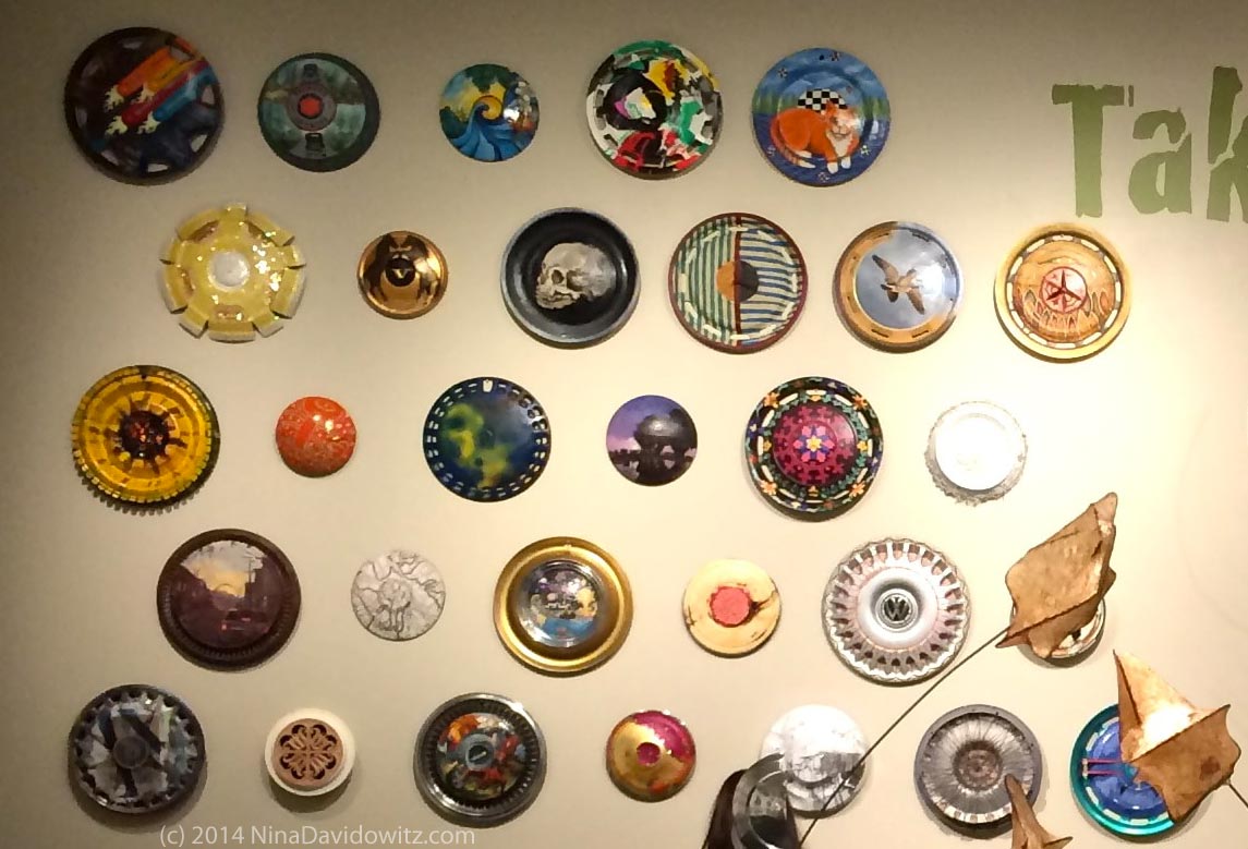 Multi-media artist Nina Davidowitz, participated in and captured this photo of the “Second Time Around: The Hubcap as Art” show organized by the Landfill Art Organization and exhibited at the Museum of the Shenandoah Valley (MSV) in 2014/15
