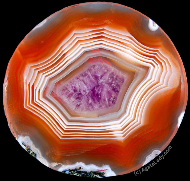 Karen Ann Brzys, of the Gitche Gumee Museum in Grand Marais, MI, offers us this fine example of a Lake Superior Carnelian Amethyst Agate. It’s a beauty.