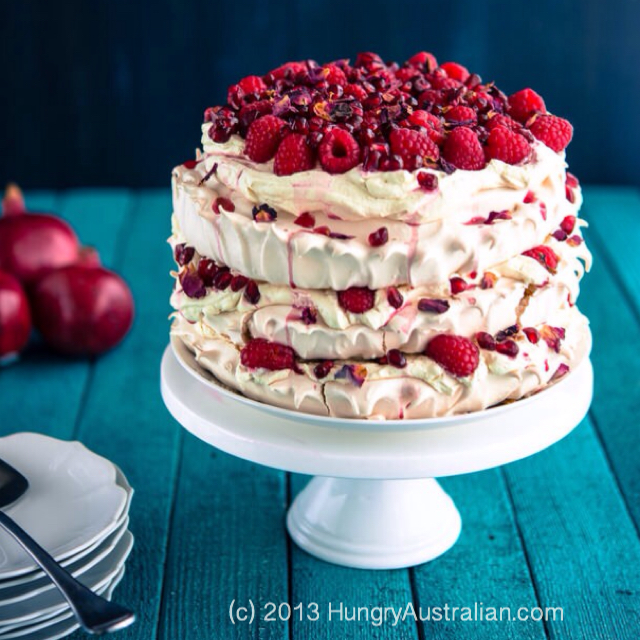 Photographer, food blogger, and writer, Christina Soong, of HungryAustralian.com, made and photographed this delightful raspberry and pomegranate version of a dessert associated with Australia: Pavlova. She also shares how to make it! Notice how along with the egg white pavlova layers being round, so too are the fresh berries.