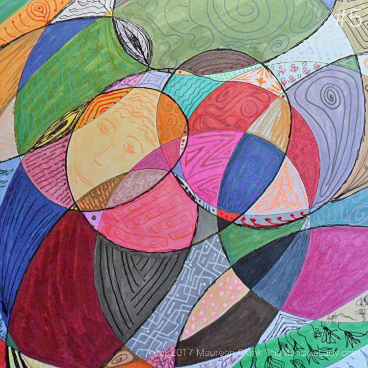 My Journey Mandala Day 4: 5 – outline with a black marker groups of sections that seem to belong together