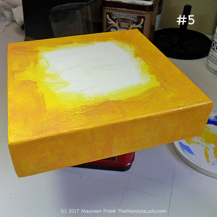 5 - while waiting for paint to dry, prep wood panel with yellow and iridescent gold