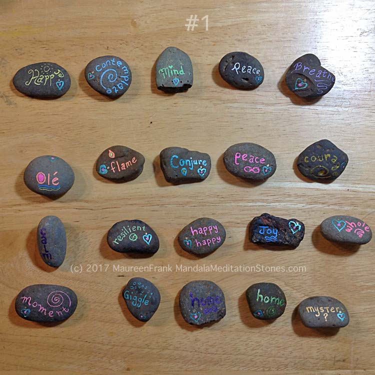 Mindfulness Stones – painted rocks – mandalas – meditation – the mandala lady September 12, 2017 Return to: 2017-255: Mindfulness StonesFull resolution (750 × 750) Image navigation Next Image 1 - set up the back side with my new logo and each stone's word Share this: Share on X (Opens in new window) X Share on Facebook (Opens in new window) Facebook Share on Tumblr (Opens in new window) Tumblr Share on Pinterest (Opens in new window) Pinterest Share on LinkedIn (Opens in new window) LinkedIn Email a link to a friend (Opens in new window) Email Like Loading...