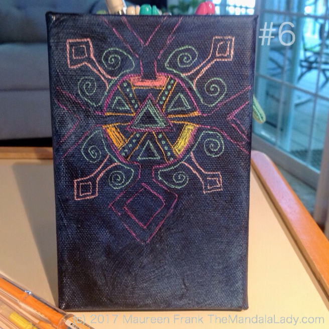 Observe Mandala – The Mandala Lady – indigo blue – purple – bronze – green – yellow – pink – orange