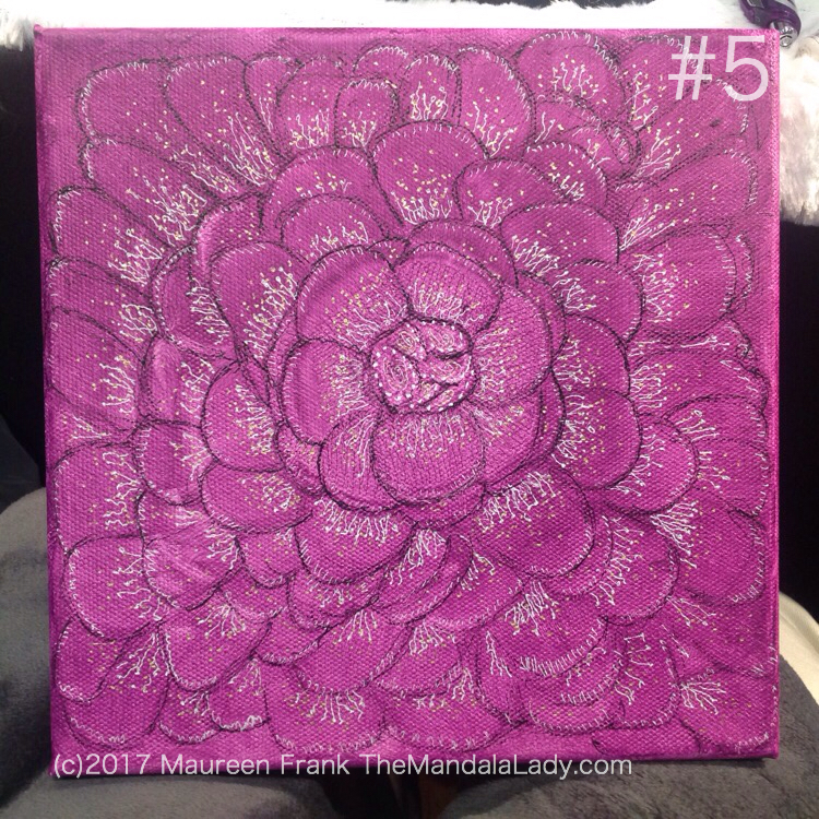 Fuchsia Mandala – floral – flower – white – black outline – gold dots