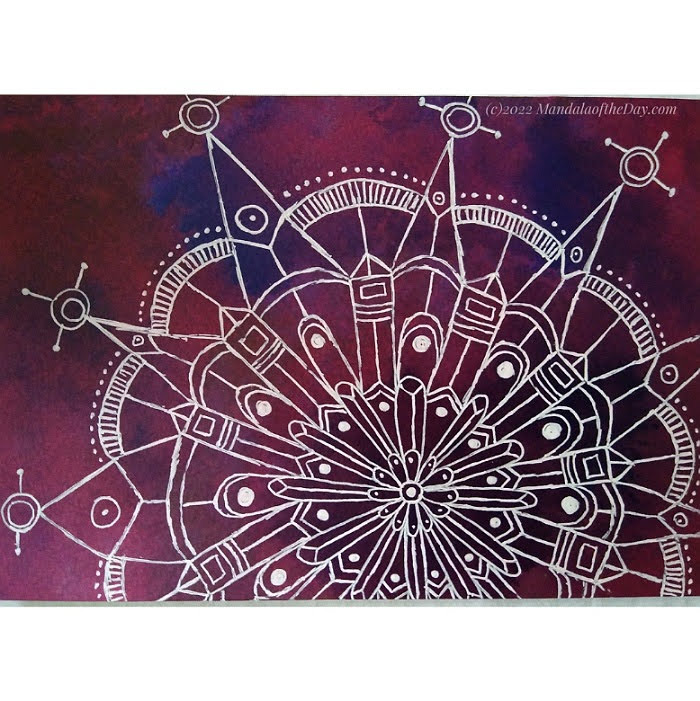 This mandala consists of straight lines and curved lines. Separately they may be rather uninteresting, and yet by coming together for the common good of the design, it creates a cohesive, expansive, and fascinating mandala.