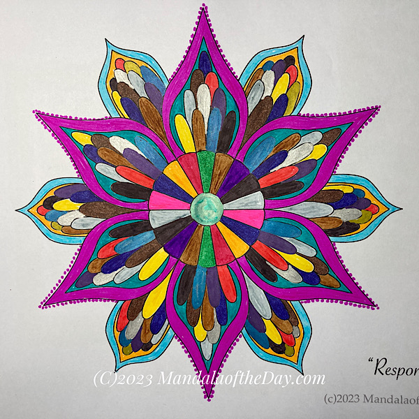 Feel free to share you colorings on social media with the hashtag #2023MOTD. I’d love to see what comes up for you. I’ll be posting my colorings here on the MandalaoftheDay as well as on FB and IG (@themandalalady). On IG I’ll also be posting time-lapsed videos of my colorings.