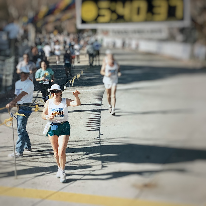 In 1989 I ran my first (and only) marathon. I set the intention prior to running it that I wanted to be running (not walking) when I crossed the finish line and I wanted to have a smile on my face when I finished. Technically, it was more of a shuffle than running…but I finished as I had intended. And yes, it took me 5 hours 40 minutes and 39 seconds. And yes, those are Mickey Mouse ears. (I’ll leave that story for another day). Oh, and I have a disposable camera in my right hand (remember those?).