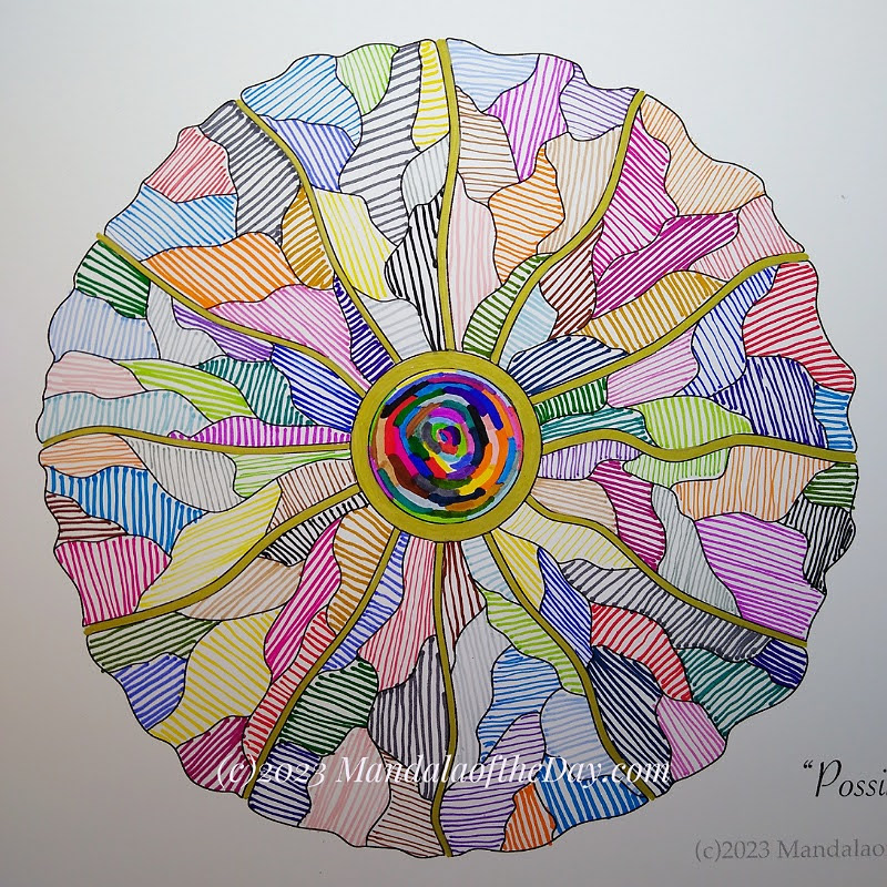 I invite you to color along with me this year as part of what I’m calling “The Year of Self-Exploration and Expansion” with all of my “Mandalas of the ___” (day, week, month, year). If you’re interested in more of a self-exploration approach to coloring, check out my “Coloring Mandalas as Meditation”. You can download this mandala to color at MandalaoftheWeek.com.