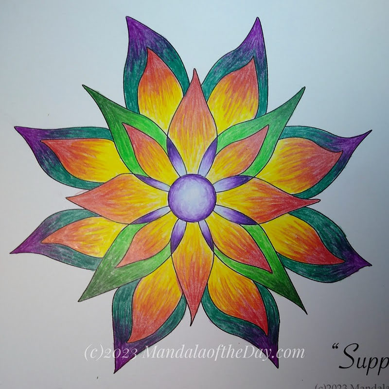 I invite you to color along with me this year as part of what I’m calling “The Year of Self-Exploration and Expansion” with all of my “Mandalas of the ___” (day, week, month, year). If you’re interested in more of a self-exploration approach to coloring, check out my “Coloring Mandalas as Meditation”. You can download this mandala at MandalaoftheWeek.com.