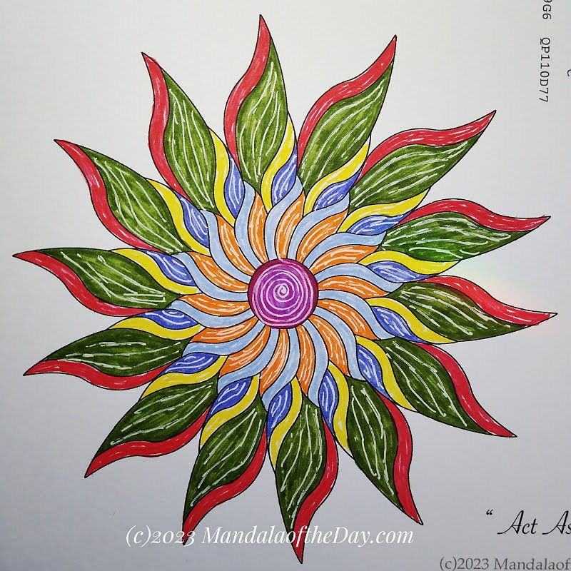 I invite you to color along with me this year as part of what I’m calling “The Year of Self-Exploration and Expansion” with all of my “Mandalas of the ___” (day, week, month, year). If you’re interested in more of a self-exploration approach to coloring, check out my “Coloring Mandalas as Meditation”. You can download this mandala at MandalaoftheWeek.com.