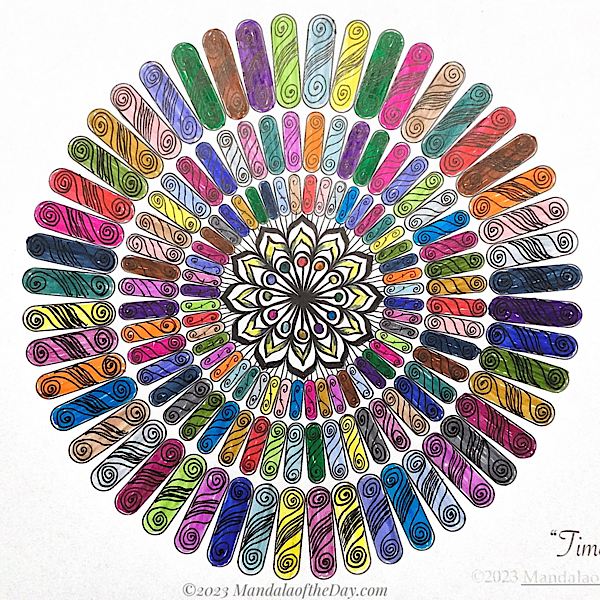 I invite you to color along with me this year as part of what I’m calling “The Year of Self-Exploration and Expansion” with all of my “Mandalas of the ___” (day, week, month, year). If you’re interested in more of a self-exploration approach to coloring, check out my “Coloring Mandalas as Meditation”. You can download this mandala at MandalaoftheWeek.com.