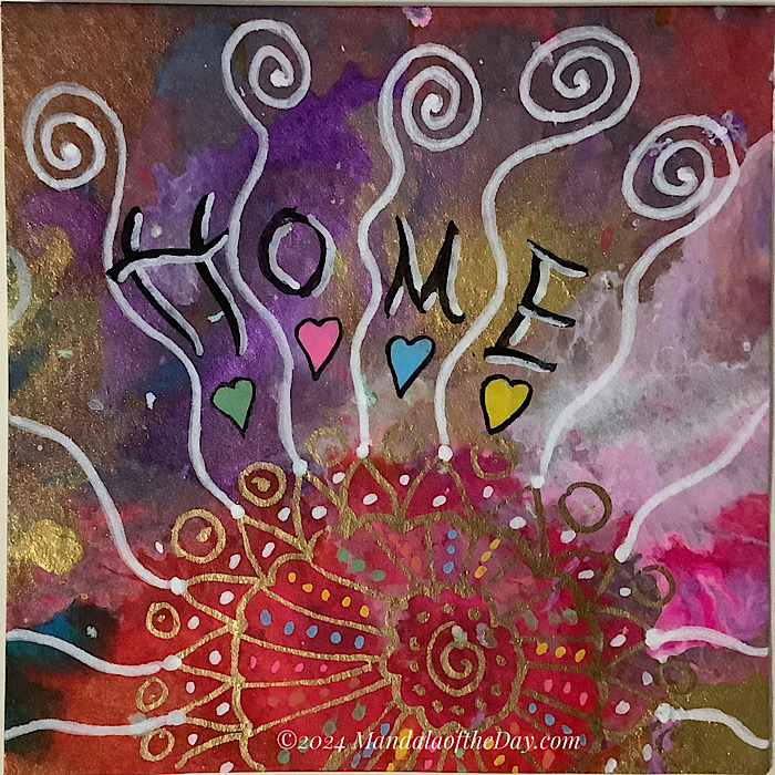 As for the “feeling”, I’m at ‘home’ when I’m 1) with people I care about, 2) hugging my dog, 3) walking in our neighborhood, 4) acting (I’m in a community theater play this month), 5) doing ANY kind of mandala art…to name a few.