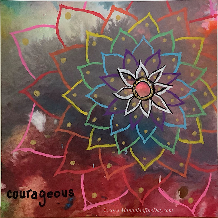 Today’s MotD asks us to explore the idea of being courageous—to face fear without flinching. In thinking about the times in my life where I’ve been courageous, some flinching was involved just before I made the conscious decision to “feel the fear and do it anyway”. Once I took a breath and a step forward and there was no turning back, I was able to “deal with” what came next. Interestingly enough, the fear tended to diminish completely.