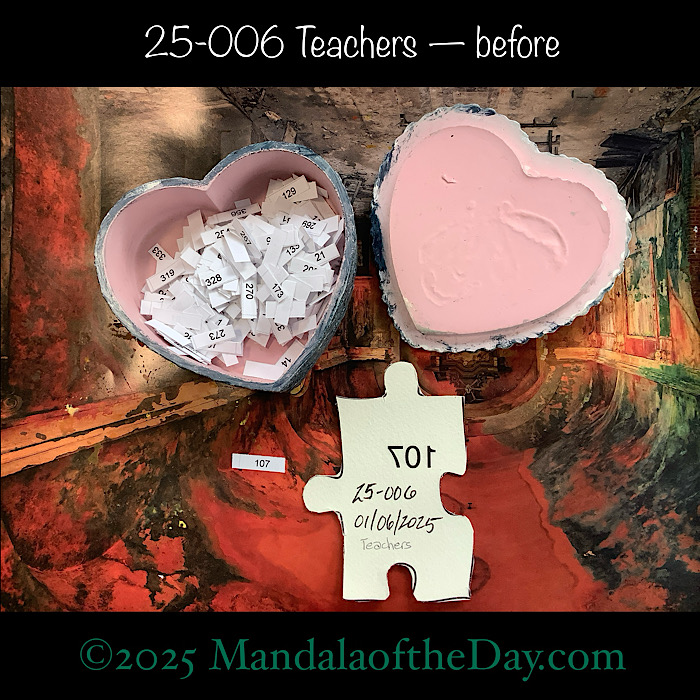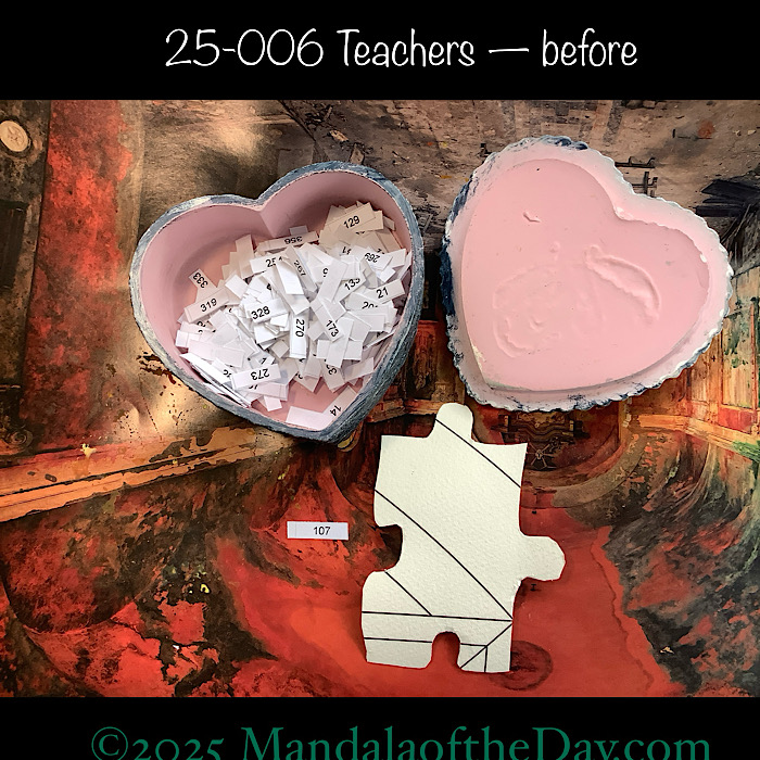 BTW…Here’s the before…the back and front view of the puzzle piece and the pretty ceramic box that holds all my numbers from which I randomly choose each day’s puzzle piece number: