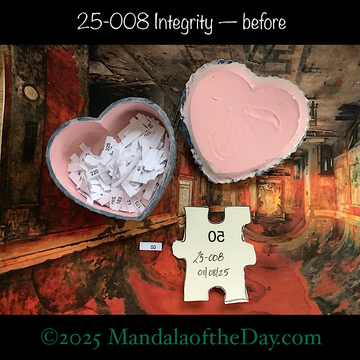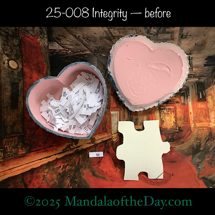 BTW…Here’s the before…the back and front view of the puzzle piece and the pretty ceramic box that holds all my numbers from which I randomly choose each day’s puzzle piece number: