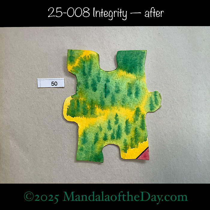 Each day, at random, I’ll be painting in watercolors one of the 365 watercolor puzzle pieces, that by the end of the year will become Archangel Mandala #4. Read more about the Archangel Series. The word/message for each piece will be inspired by Melody Beattie’s book “52 Weeks of Conscious Contact”.