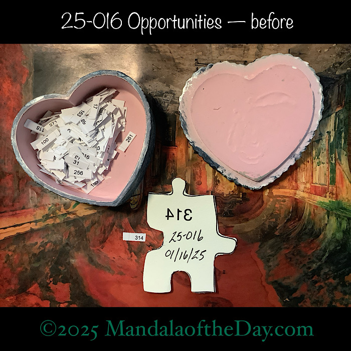 BTW…Here’s the before…the front and back view of today’s puzzle piece and the pretty ceramic box that holds all my numbers from which I randomly choose each day’s puzzle piece number: