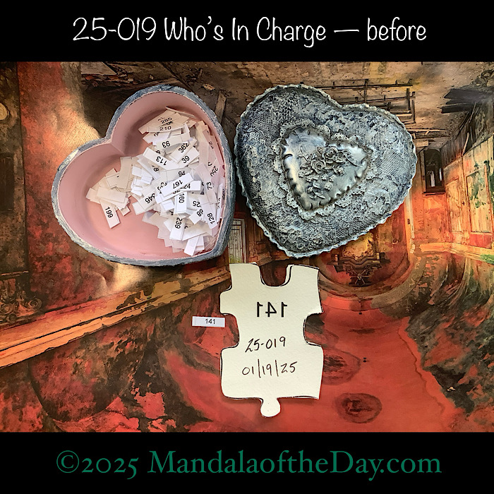 BTW…Here’s the before…the front and back view of today’s puzzle piece and the pretty ceramic box that holds all my numbers from which I randomly choose each day’s puzzle piece number:
