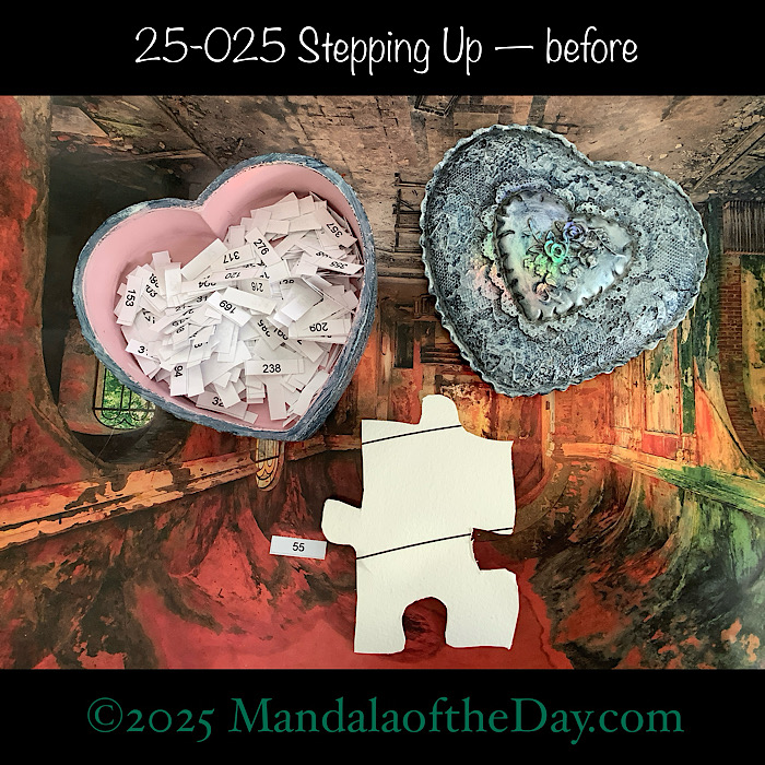 BTW…Here’s the before…the front and back view of today’s puzzle piece and the pretty ceramic box that holds all my numbers from which I randomly choose each day’s puzzle piece number:
