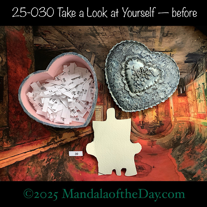 BTW…Here’s the before…the front and back view of today’s puzzle piece and the pretty ceramic box that holds all my numbers from which I randomly choose each day’s puzzle piece number: