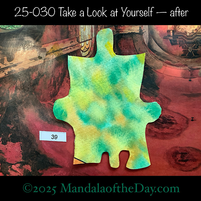Throughout the year, I’ll be building one large (48”x48”) Tibetan-styled Mandala one piece at a time…one puzzle piece at a time, that is. The mandala design and the reversed puzzle side were printed on artist-quality watercolor paper. The forward facing puzzle side was printed on a 48”x48” wood panel.