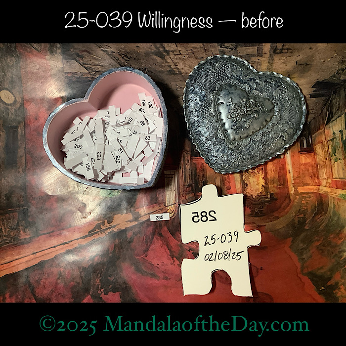BTW…Here’s the before…the front and back view of today’s puzzle piece and the pretty ceramic box that holds all my numbers from which I randomly choose each day’s puzzle piece number: