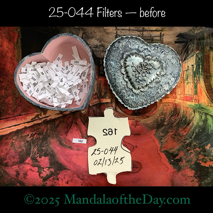 BTW…Here’s the before…the front and back view of today’s puzzle piece and the pretty ceramic box that holds all my numbers from which I randomly choose each day’s puzzle piece number: