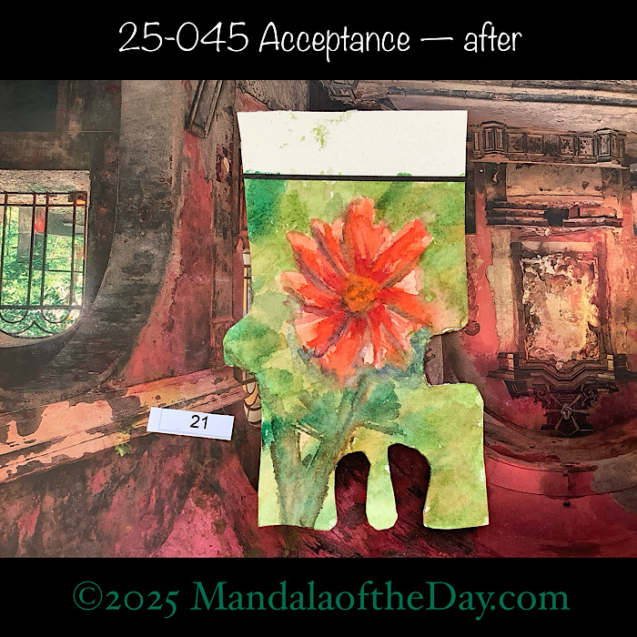 Each day, at random, I’ll be painting in watercolors one of the 365 watercolor puzzle pieces, that by the end of the year will become Archangel Mandala #4. Read more about the Archangel Series. The word/message for each piece will be inspired by Melody Beattie’s book “52 Weeks of Conscious Contact”.