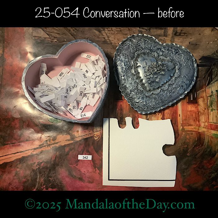 BTW…Here’s the before…the front and back view of today’s puzzle piece and the pretty ceramic box that holds all my numbers from which I randomly choose each day’s puzzle piece number: