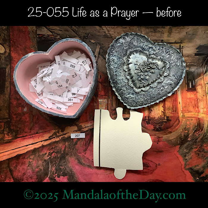 BTW…Here’s the before…the front and back view of today’s puzzle piece and the pretty ceramic box that holds all my numbers from which I randomly choose each day’s puzzle piece number: