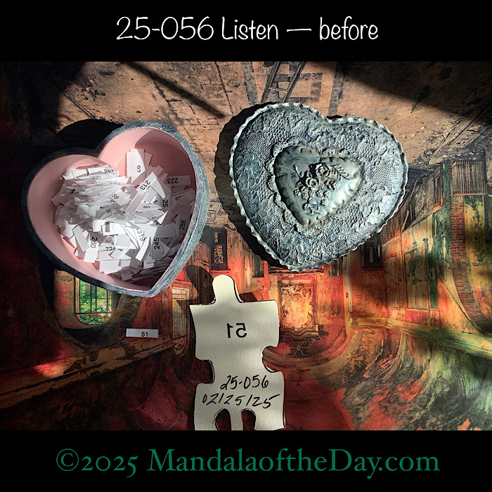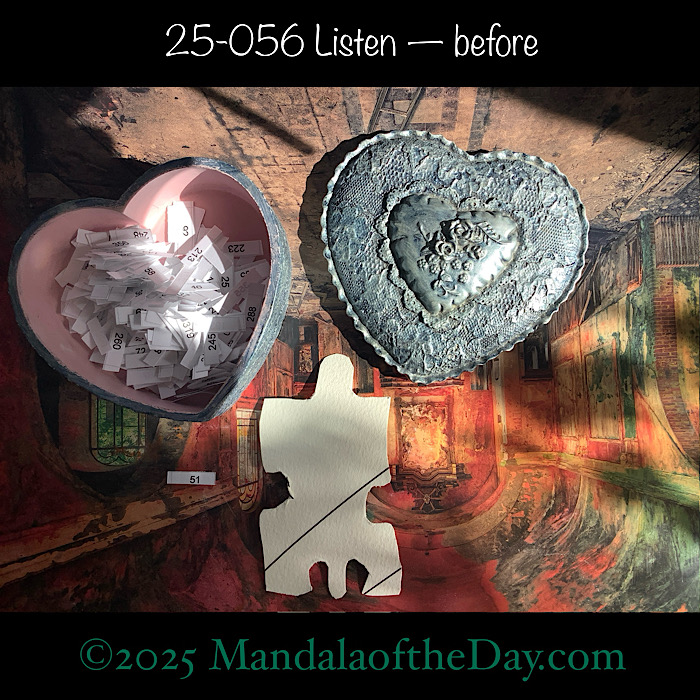 BTW…Here’s the before…the front and back view of today’s puzzle piece and the pretty ceramic box that holds all my numbers from which I randomly choose each day’s puzzle piece number: