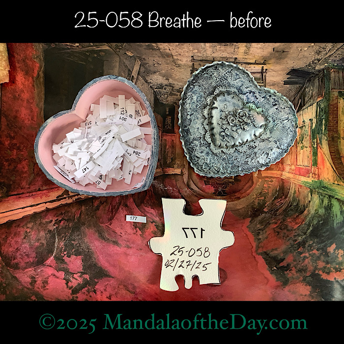 BTW…Here’s the before…the front and back view of today’s puzzle piece and the pretty ceramic box that holds all my numbers from which I randomly choose each day’s puzzle piece number: