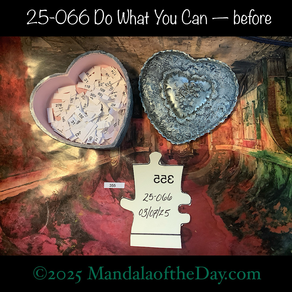BTW…Here’s the before…the front and back view of today’s puzzle piece and the pretty ceramic box that holds all my numbers from which I randomly choose each day’s puzzle piece number: