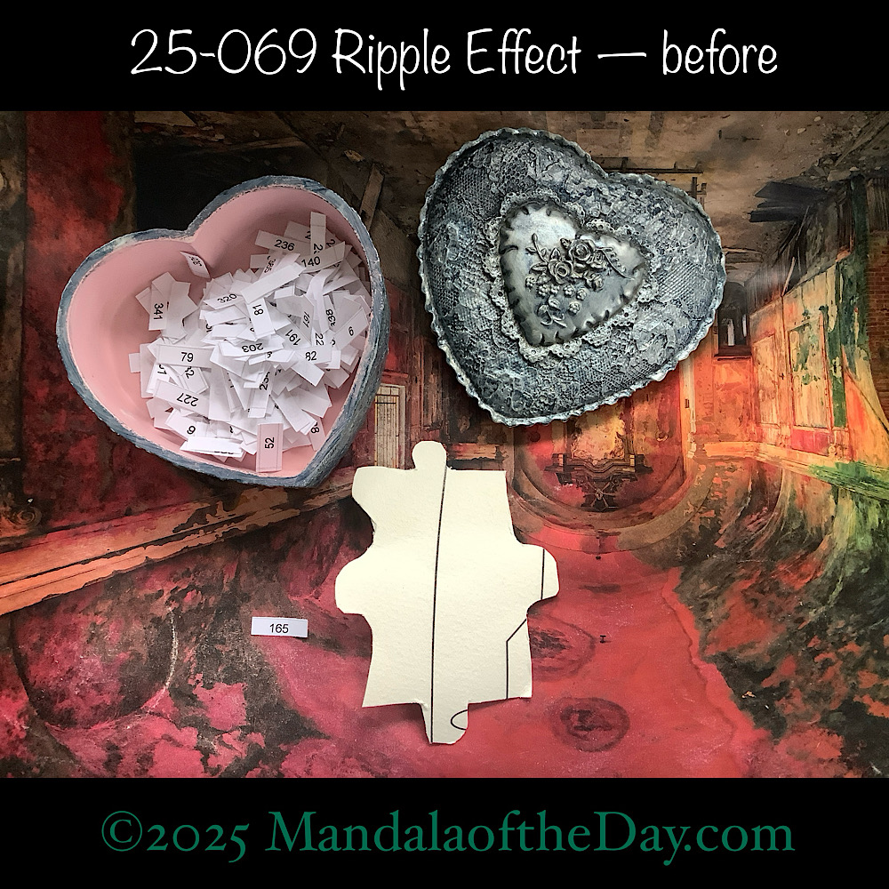 BTW…Here’s the before…the front and back view of today’s puzzle piece and the pretty ceramic box that holds all my numbers from which I randomly choose each day’s puzzle piece number: