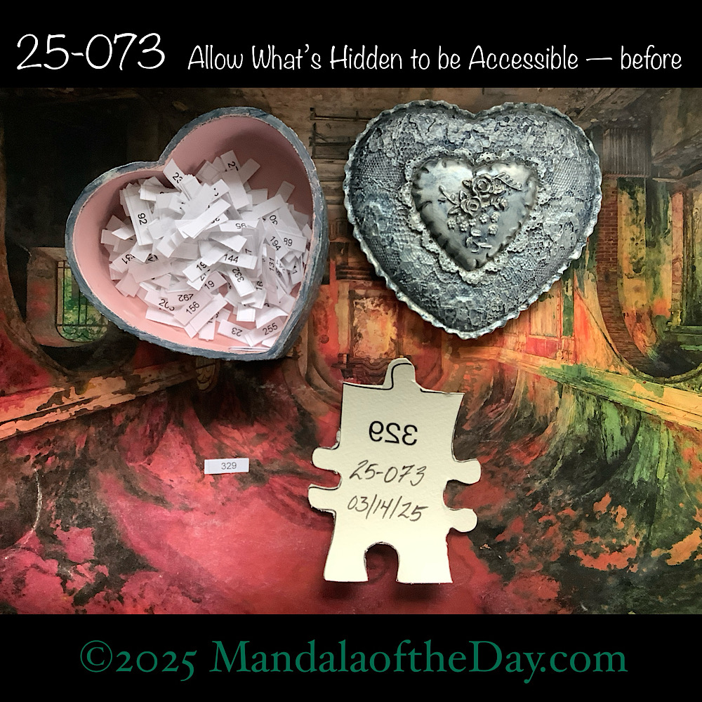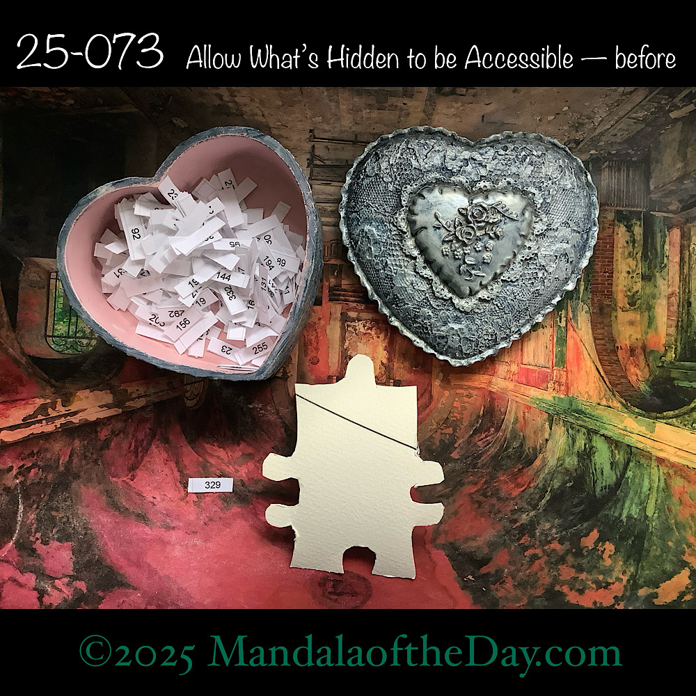 BTW…Here’s the before…the front and back view of today’s puzzle piece and the pretty ceramic box that holds all my numbers from which I randomly choose each day’s puzzle piece number: