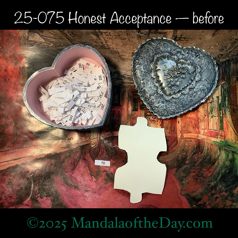 BTW…Here’s the before…the front and back view of today’s puzzle piece and the pretty ceramic box that holds all my numbers from which I randomly choose each day’s puzzle piece number: