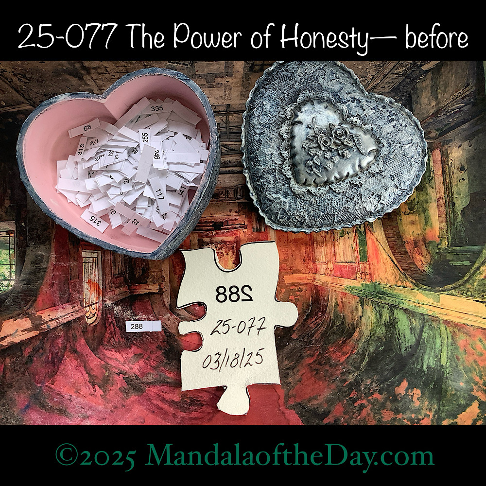 BTW…Here’s the before…the front and back view of today’s puzzle piece and the pretty ceramic box that holds all my numbers from which I randomly choose each day’s puzzle piece number: