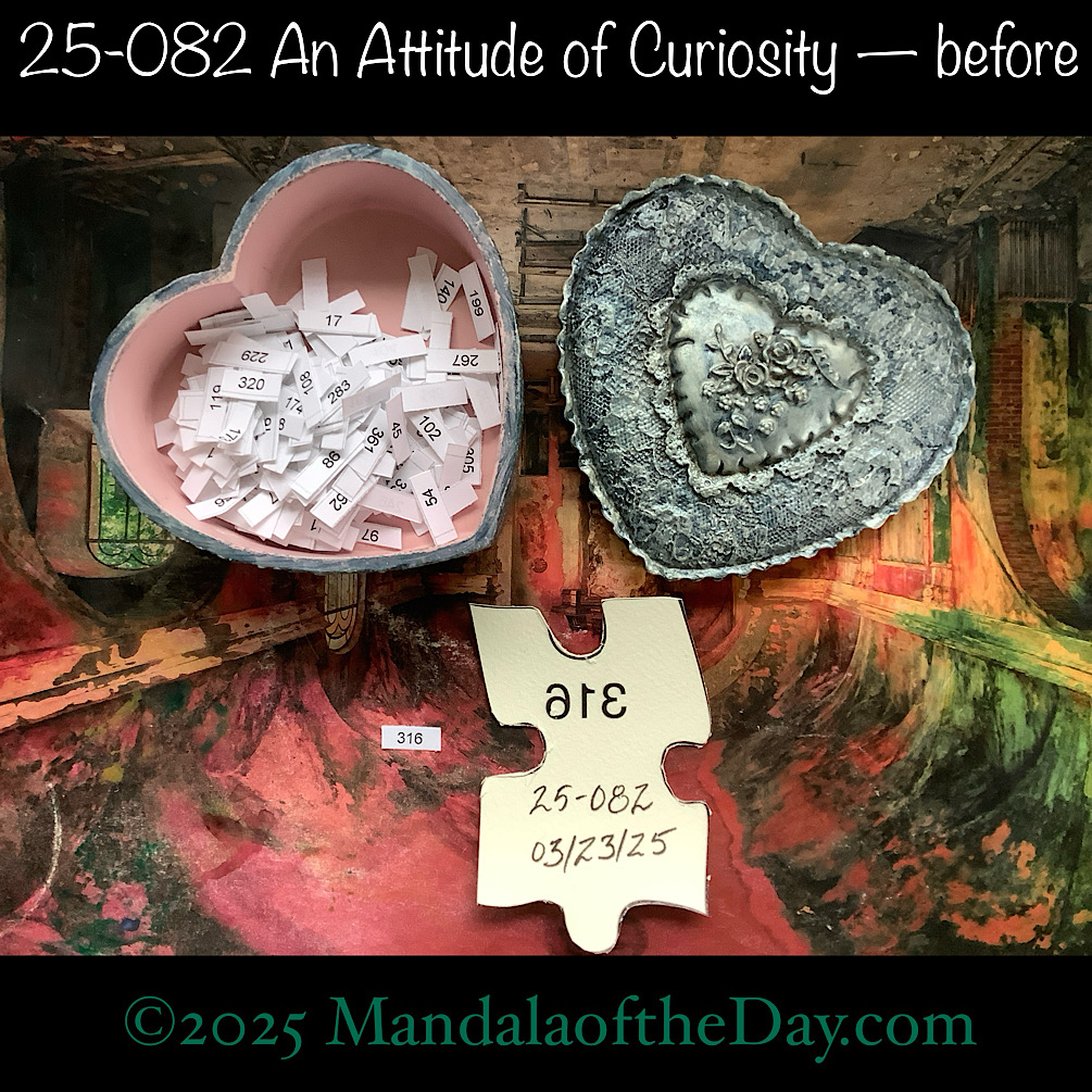 BTW…Here’s the before…the front and back view of today’s puzzle piece and the pretty ceramic box that holds all my numbers from which I randomly choose each day’s puzzle piece number: