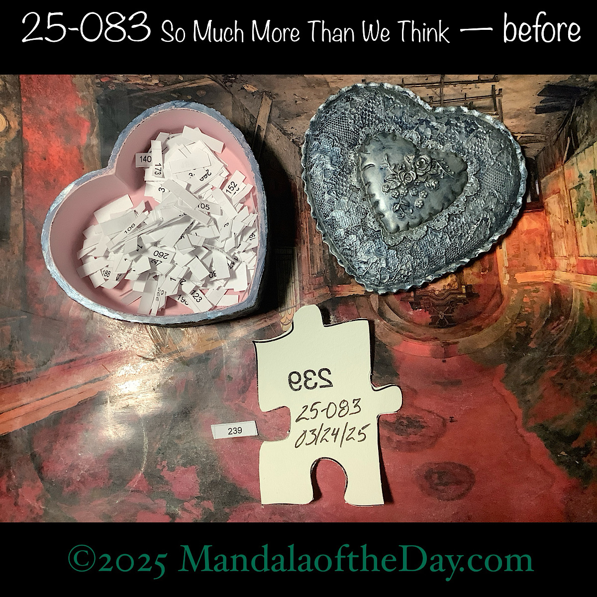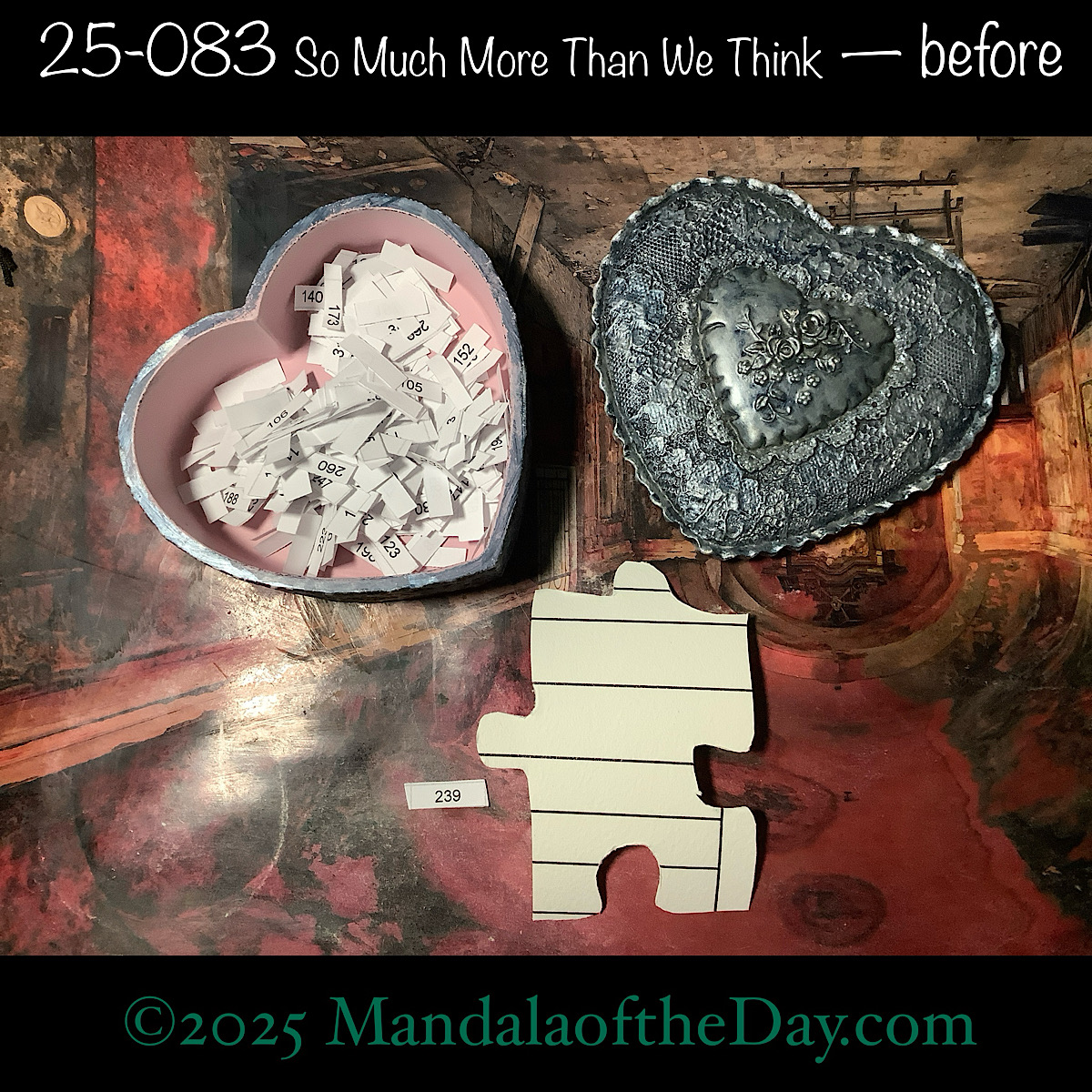 BTW…Here’s the before…the front and back view of today’s puzzle piece and the pretty ceramic box that holds all my numbers from which I randomly choose each day’s puzzle piece number: